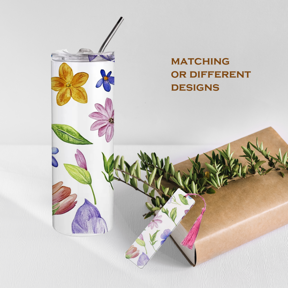 - One 20oz Stainless Steel Tumbler printed with your design, and 1 straw + one Personalized Metal Bookmark and Wrapped with a Different Ribbon to Fit Your Event.