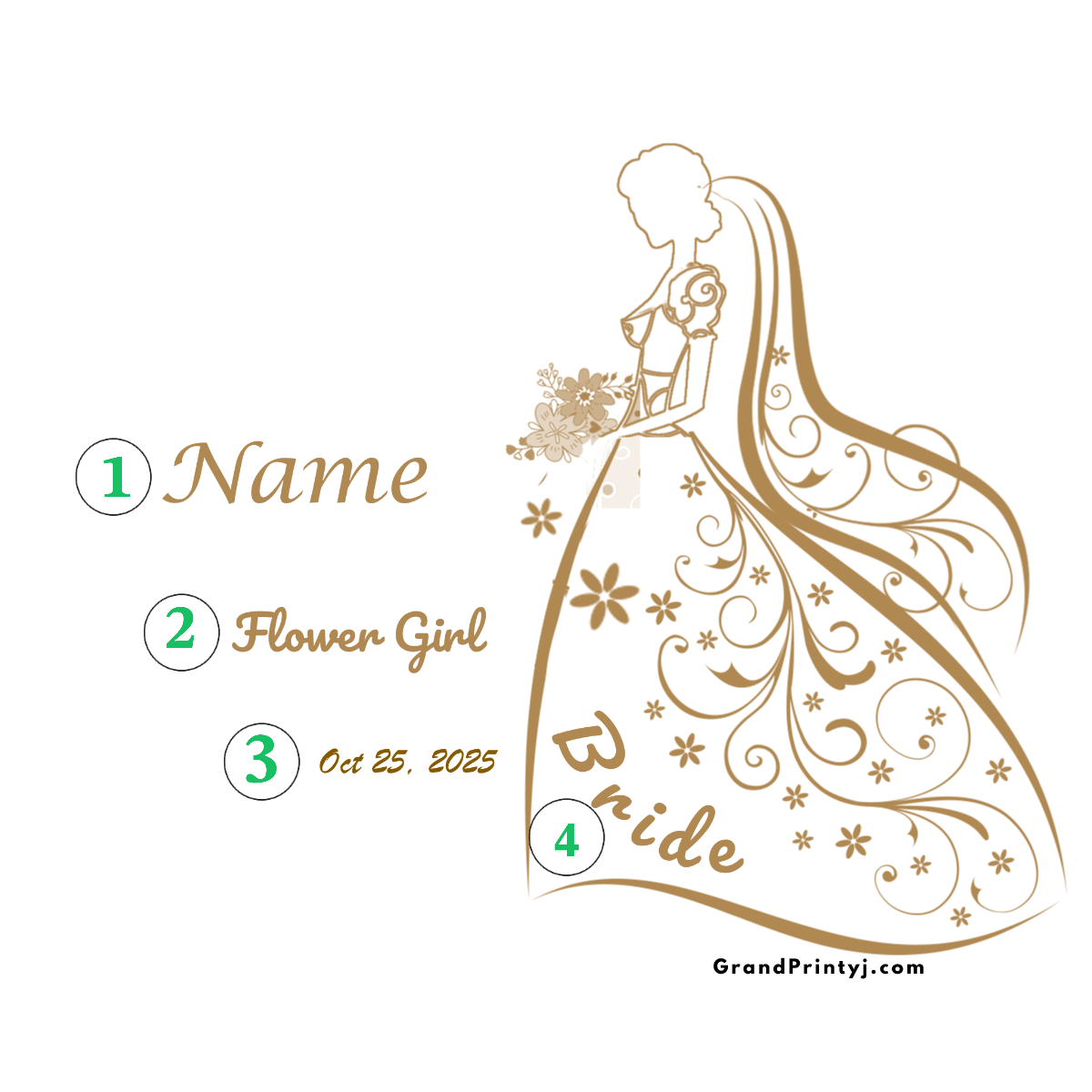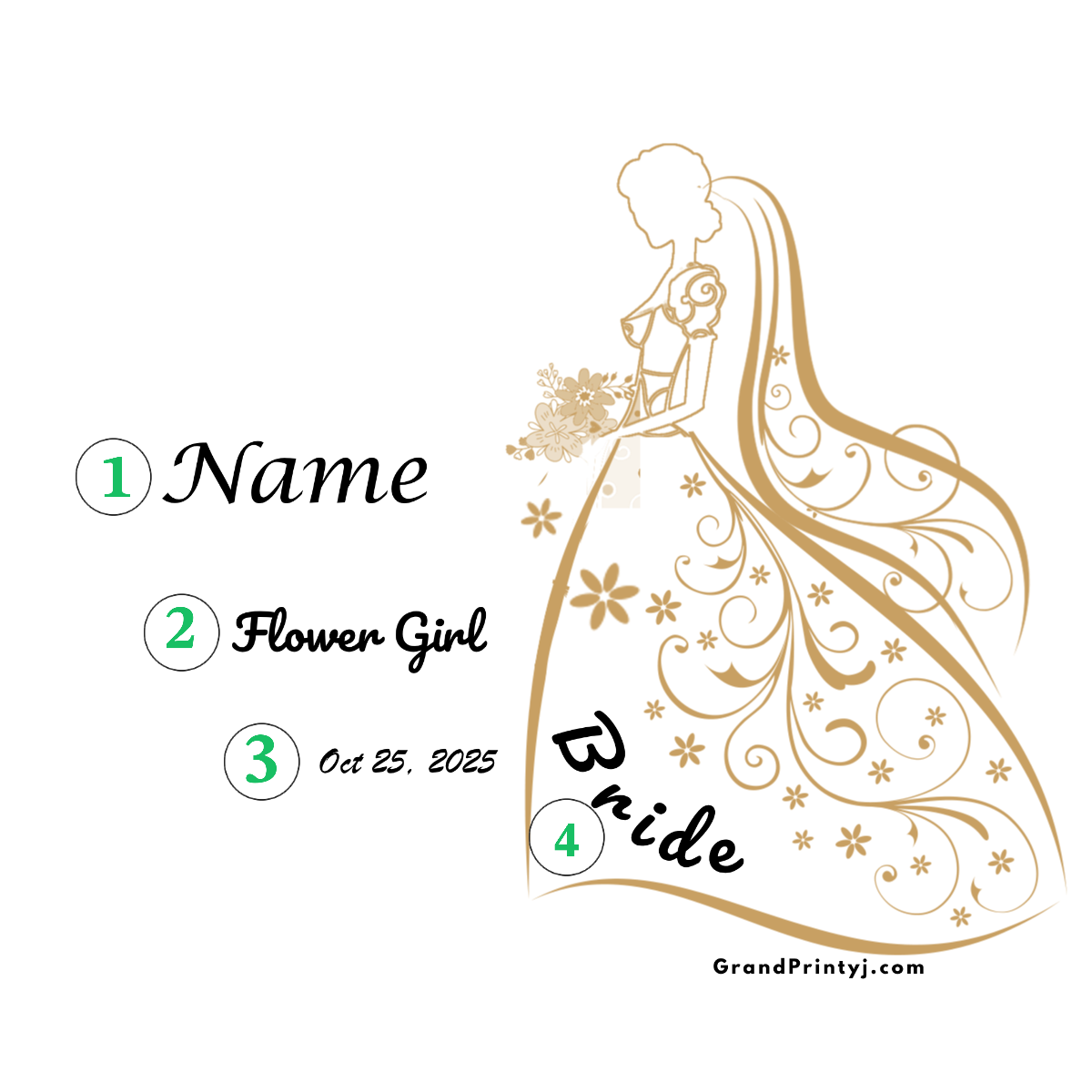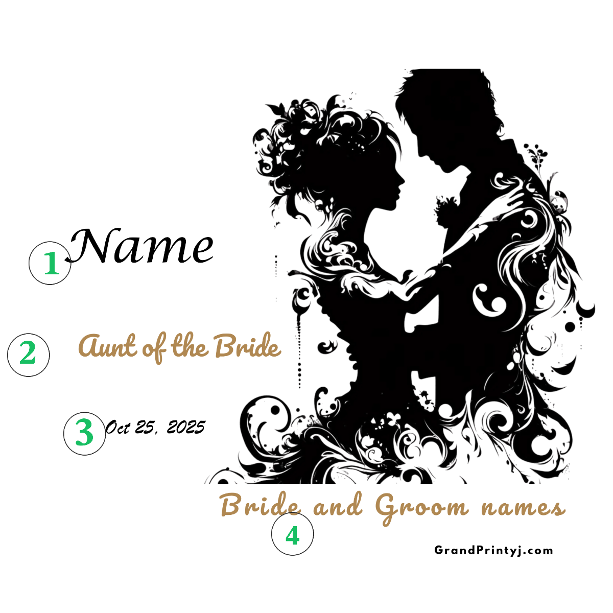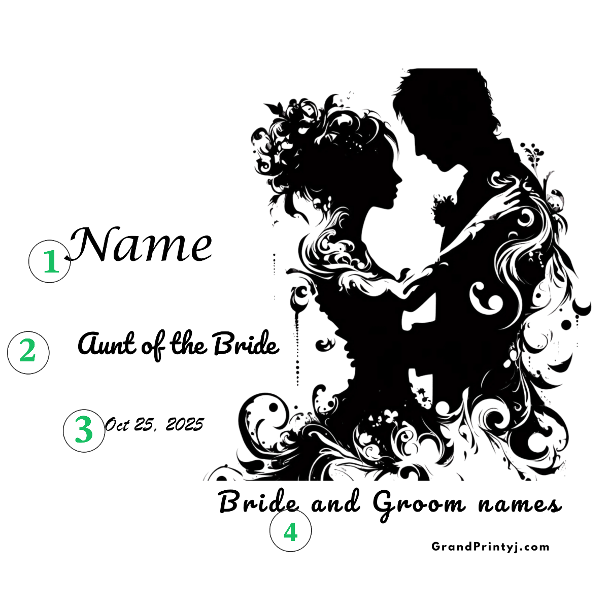 Add your preferred names and text in line 1 to 4 and add the bride and the groom names.